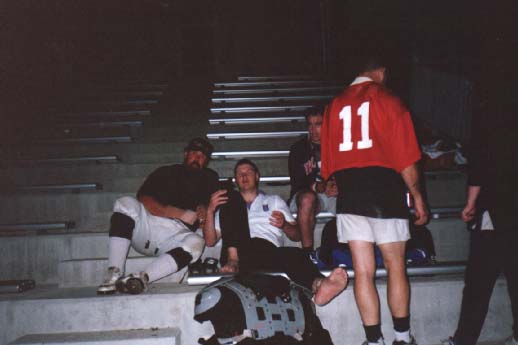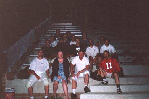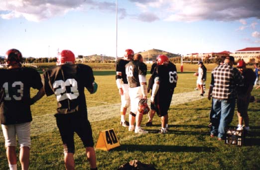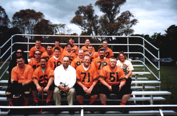 In 1994 the tables were turned somewhat with the Thunderbolts able to end the Space Cadets season in the elimination semi-final, qualifying the Belconnen Thunderbolts to fill a birth in Capital Bowl II against the Canberra University Firebirds, who had played an undefeated season. Unfortunately the Thunderbolts were handed a very convincing thrashing by the Firebirds to the tune of 20 points. Prior to the ACTGL's 1995 season, at a meeting of the league, both the Tidbinbilla Space Cadets and the Belconnen Thunderbolts were suffering from a lack of both finances and players. The likely outcome of this situation was to be that neither team would be in a position to field a side for that year. Chris Dingle, of the Space Cadets, and Steve Hoppitt, of the Thunderbolts, put their heads together and it was proposed and agreed that a single combined team, yet to be named, would take the field for season 1995. Not too bad an idea considering that these were two teams which could only be described as serious enemies, and in fact that 1994 elimination semi-final had been called off with around ten minutes remaining of the fourth quarter due to a lack of players following an all-in brawl. With two weeks before the commencement of the 1995 season the two teams came together under one set of team colours for the first time, with amazing results. Everyone survived that first training session. Roger Vann was taken on as Senior Coach and Chris Dingle accepted the task of Club Manager. The first five games of the season fulfilled the predictions of the league and other teams with the Tigers rocketing to five straight losses, but hope was present as four of those five were only lost in the final minute or two of the fourth quarter. Stamina was our problem. What a turnaround! The Canberra Tigers created history by winning Six games straight to become the 1995 ACT Gridiron League Champions 14 - 13 over the Queanbeyan Wolverines. The Tigers have not been quite so fortunate in the three seasons since. Although the Tigers played in Capital Bowls in 1996 and 1998 we have failed to take the championship in those years, and going out in the 1997 elimination semi-final. That brings us to 1999. Confidence was high for a big year with two players, and possibly more, from that 1995 Championship side returning. Rob Warke, who had been off the playing field with knee problems for two years, returned to once again join up with long time "O" line partner Steve"Quasi"Hoppitt, who came out of retirement after only one year out of the game. Bruce Tobin was another to return and after their time off these guys were hungry for a big season. They, along with the rest of the Canberra Tigers organisation, were rewarded with a win in Capital Bowl VII after defeating triple champions, the Tuggeranong Tornadoes, 25 - 8. |